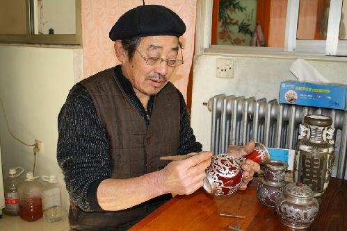 威海锡镶第四代传承人谷祖威现场展示技艺