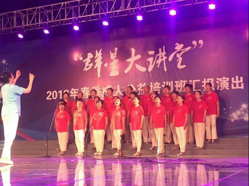 2018年“群星大讲堂”春季成人公益班自3月份开班,设有声乐、中国舞、拉丁舞、肚皮舞、京剧青衣、古筝、二胡、葫芦丝、太极拳、国学、书法等28个班次,培训学员680多人。